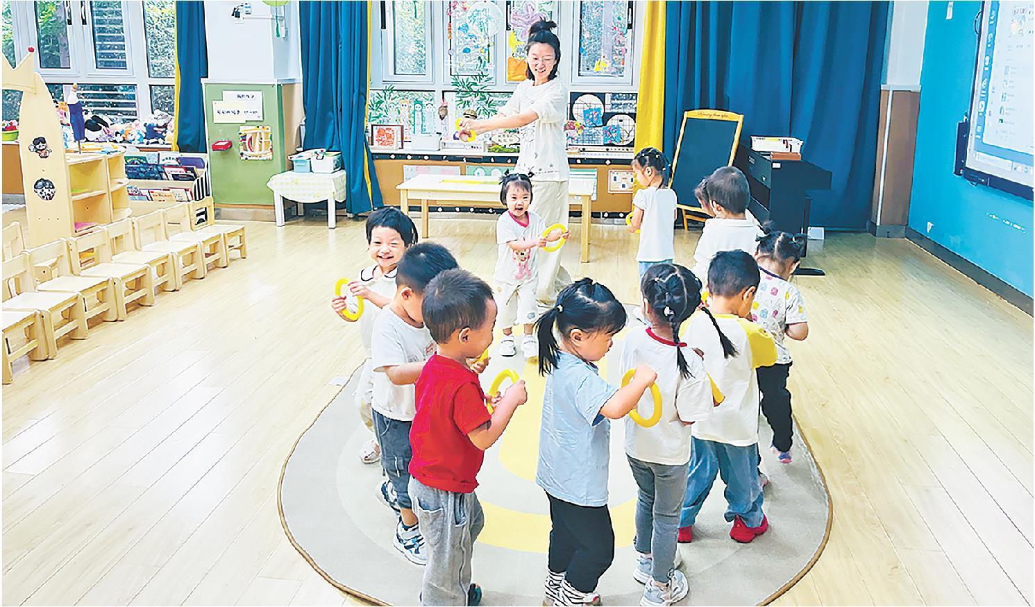 按山东省2025年1月出台的招收托班、为家庭分忧的有关政策部署,济南市历下区育德幼教集团(中央公馆园)今年秋季首次开招托班,2个班共计30名2.5岁-3岁幼儿。该园开展的丰富多彩的游戏活动生动体现了幼儿园“育养如家,玩润童心”的托育理念:教师以家人式陪伴营造安全温暖的成长环境,以趣味游戏实现科学照护与成长浸润相结合最大股票配资网,在“玩”中润育心灵,在“养”中涵养品德,切实推动幼儿身心与社会性全面发展。图为托1班教师杨星瑞正组织幼儿开展手持环形器械律动游戏,可有效锻炼幼儿的肢体协调、感官统合与社交互动能力。